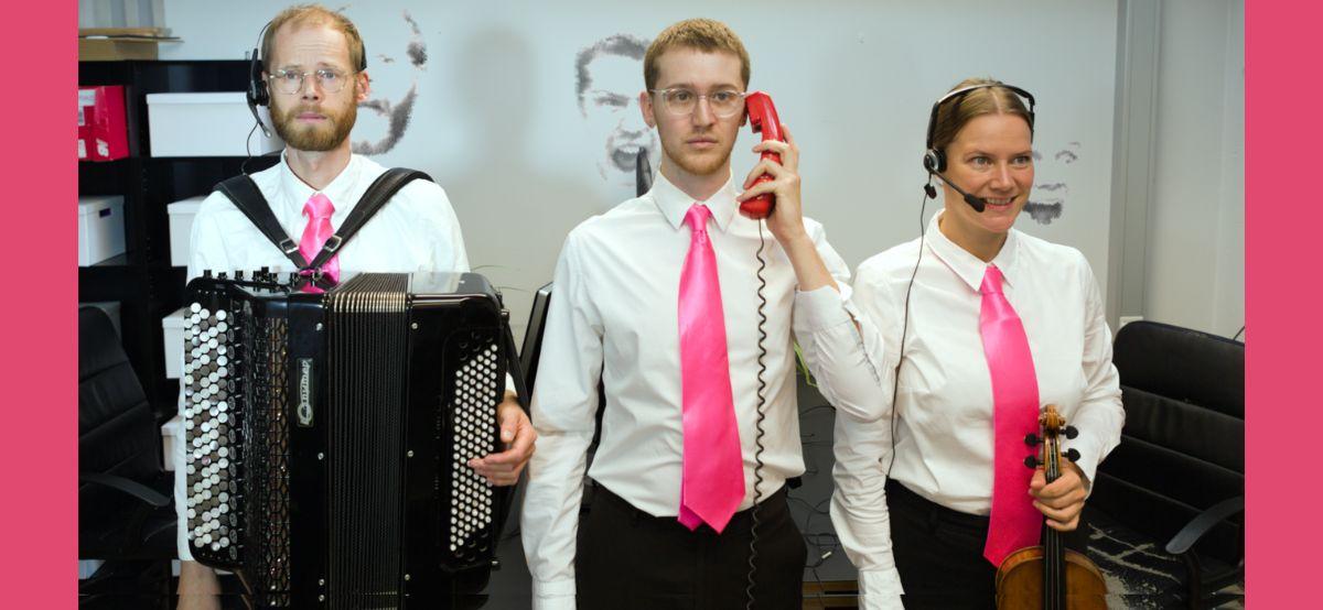 Om forestillingen: Hos dataindsamlingsbureauet ‘Resounding Success’ sidder callcentermedarbejdere (spillede af Andreas Borregaard og Anna Jalving) udstyret med instrumenter og et foruroligende kunstigt smil bag deres computerskærme, og venter. Mens de venter på, at deres opkald bliver stillet om, høres firmaernes ventemusik spillet af et husorkester, der kun anes som silhouetter bag en belyst skærm. (hold-music trio: Kirstine Elise Pedersen, Hsiao Tung Yuan og Joss Smith).Projektet opererer på grænsen mellem ny musik, eksperimentelt teater medpublikumsdeltagelse og interaktiv installationskunst, og projektets centrale temaer lander på den foruroligende musikalitet, der ligger begravet i gentagende arbejde,'cold calls' og arbejdspladsens teknologi. De psykologiske virkninger af ventemusik og eksistentielle spørgsmål omkring tid, formål og handlekraft.