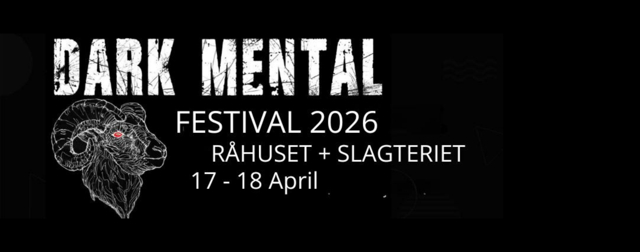 Dark Mental Festival 2026 er 12. udgave af denne upcoming metalfestival, der gennem årene har været afholdt på forskellige spillesteder i København. I år finder festivalen endnu engang sted på Råhuset og i Forsamlingshuset (aka "Slagteriet") på Onkel Dannys Plads, hvor du på kun to dage kan opleve hele 16 bands.