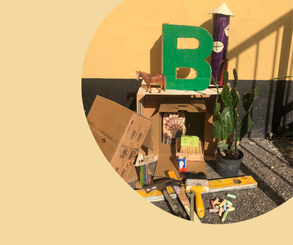 Vi bygger med pap og limer, tegner, farver, skærer, klipper og klistrer vores egne forslag og ønsker til en byggelegeplads.