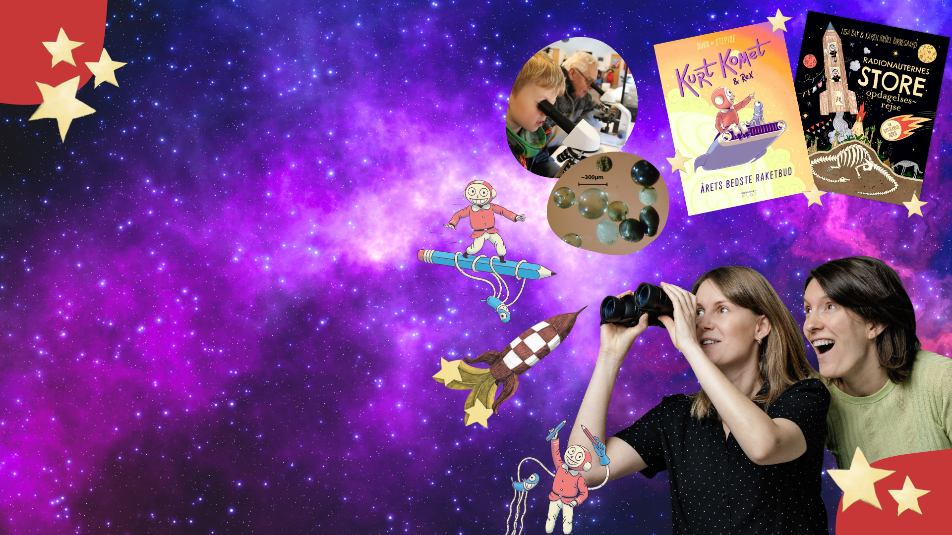 Vi skal på en eventyrlig rumrejse! Hør Radionauterne fortælle om vores fantastisk univers, byg dit eget rumvæsen, få et stjerneskud i hånden, opfind en uopdaget fantasi-planet - og meget andet!