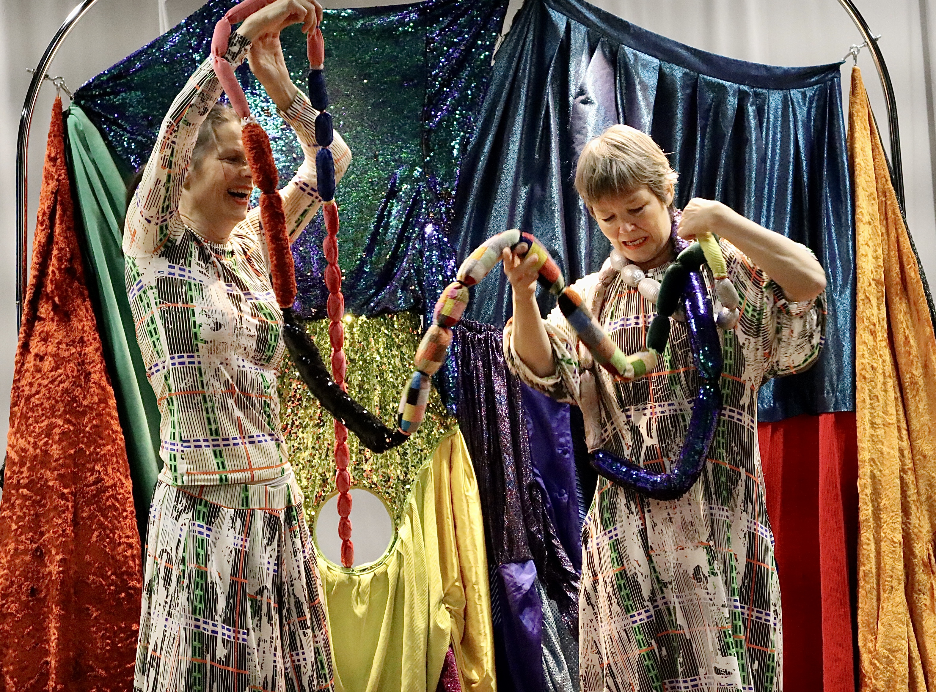 Fra den store grå bylt på gulvet folder forestillingens hjerne/scenografi sig ud. Vi hører forunderlige lyde. Der dukker et glitrende væsen op og endnu en titter frem. De nærmer sig hinanden, tiltrækkes - bliver til hjernespaghetti. Elektriske impulser gnistrer fra fingrene i miniballet. Alt skifter form. Legende.
