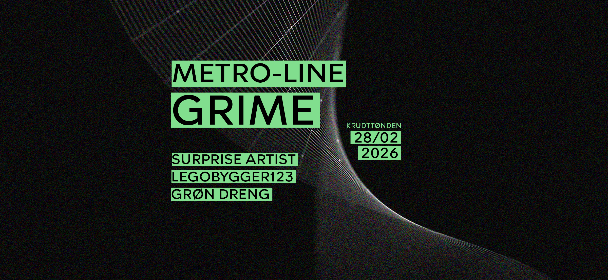 METRO-LINE vender stærkt tilbage og sparker året i gang med en kompromisløs aften fyldt med hårdtslående beats, tunge basgange og rå energi. Den danske grime-scene er i bevægelse – og denne aften får du et unikt indblik i, hvor det hele er på vej hen.