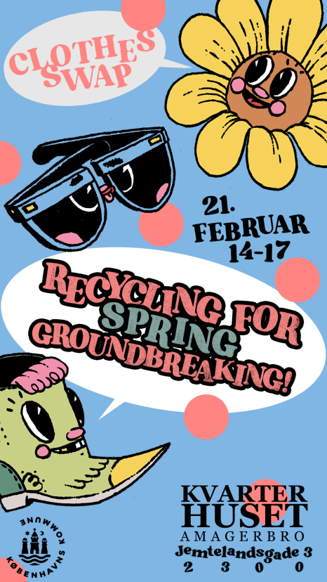 In 2026 Kvarterhuset opens up its doors to a cozy and safe space celebrating sustainable ways of living. At a clothing swap we share our big, common wardrobe. Instead of spending money, we swap. Instead of buying from new, we make use of all the clothes that have already been produced and sold.