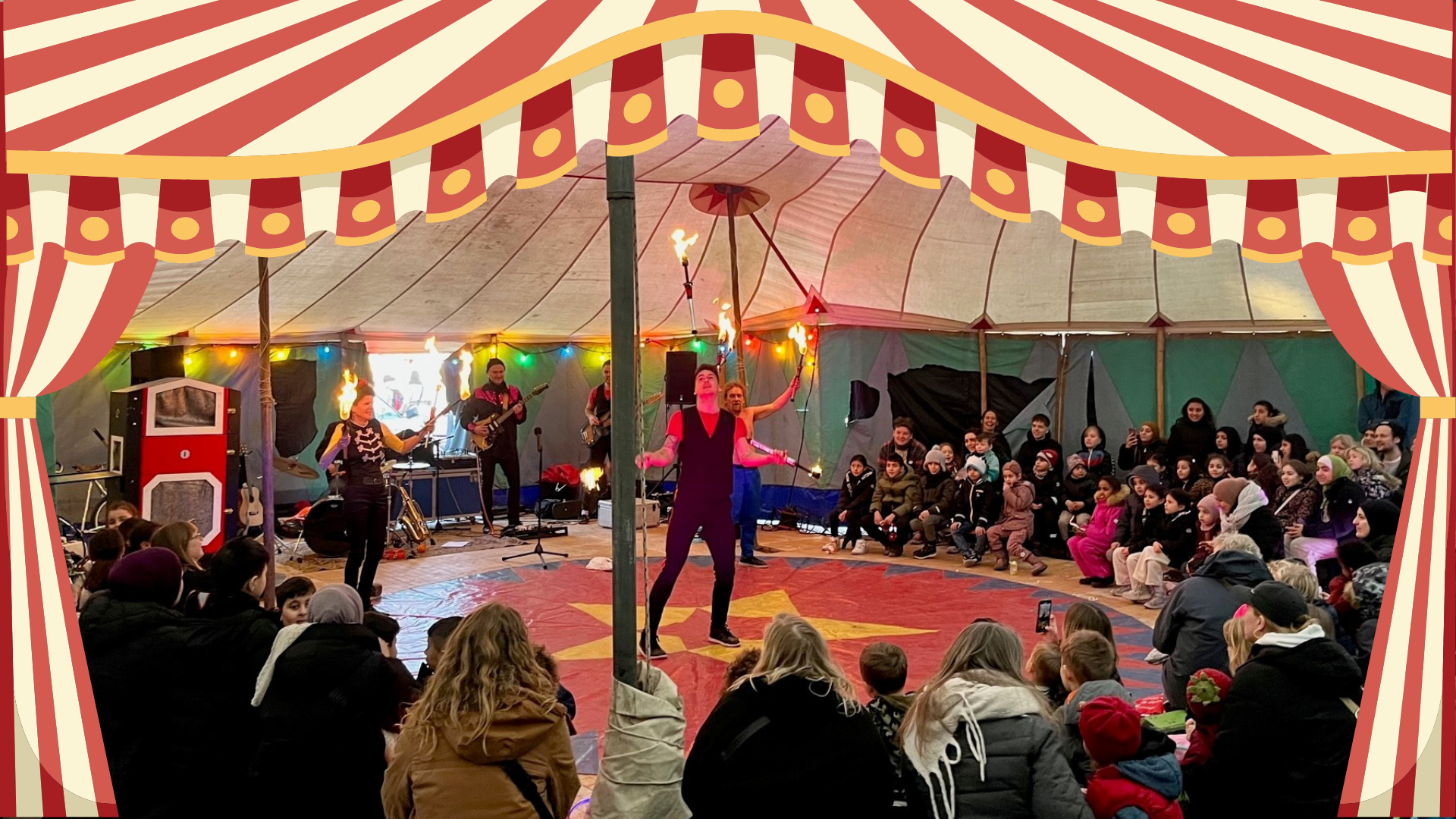Igen i år ruller vi popcornmaskinen ud, tænder for de kulørte lamper og inviterer børn og deres voksne indenfor i Vinterpaladset, et cirkustelt på Blågårds Plads.